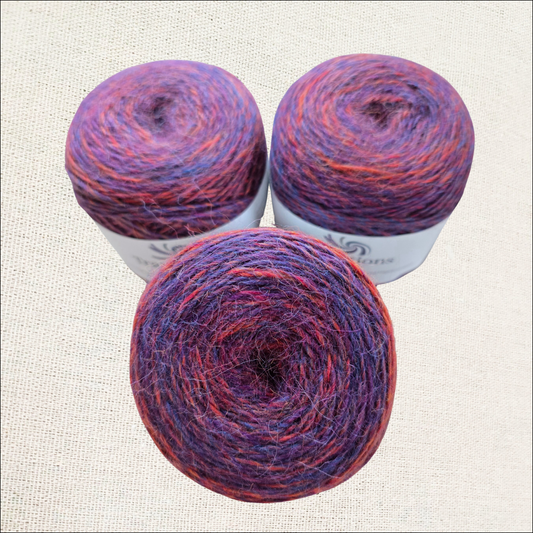 "I made a splendid shawl from [Acadia by the Fibre Co]. I knit it to a 19 stitches to 4 inches gauge and got a beautiful drape after blocking. The yarn has a rustic feel from the silk with a slightly slubby, thick/thin look. I'm now working on a pair of fingerless gloves worked with 2 strands held together to match the shawl and they are gorgeous! I'm a process knitter and I love the way the yarn feels in my hands. That's important to me. Thank you!"