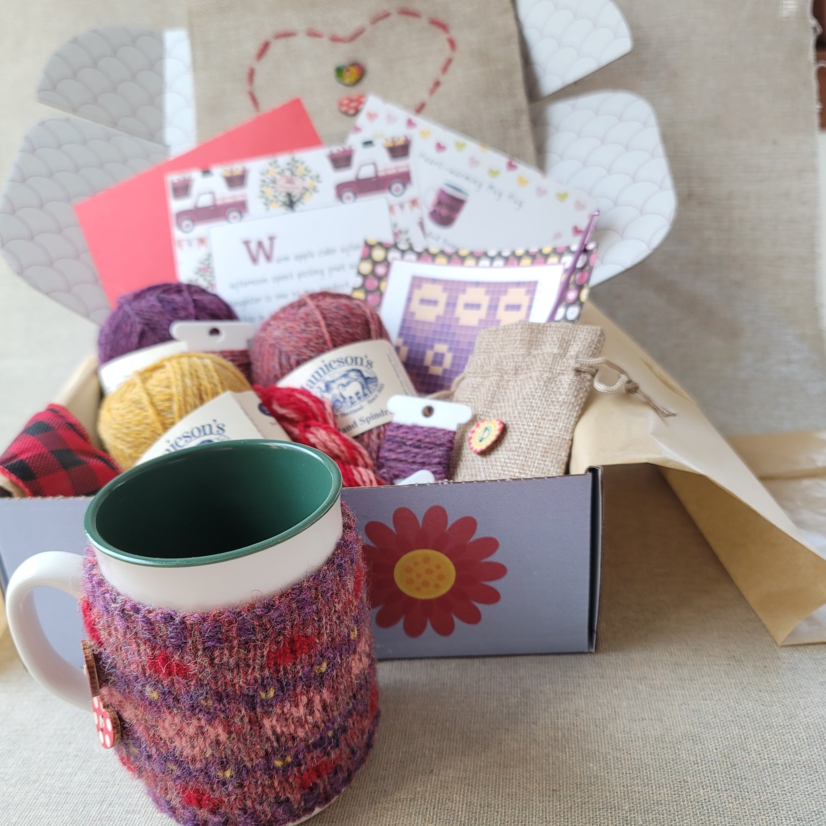 "When I opened my Sweet Meadow box, I've never been so delighted. I really felt special! My box was filled with adorable projects and I love the 2 handmade pouches! I'm very much looking forward to every Sweet Meadow yarn club box."