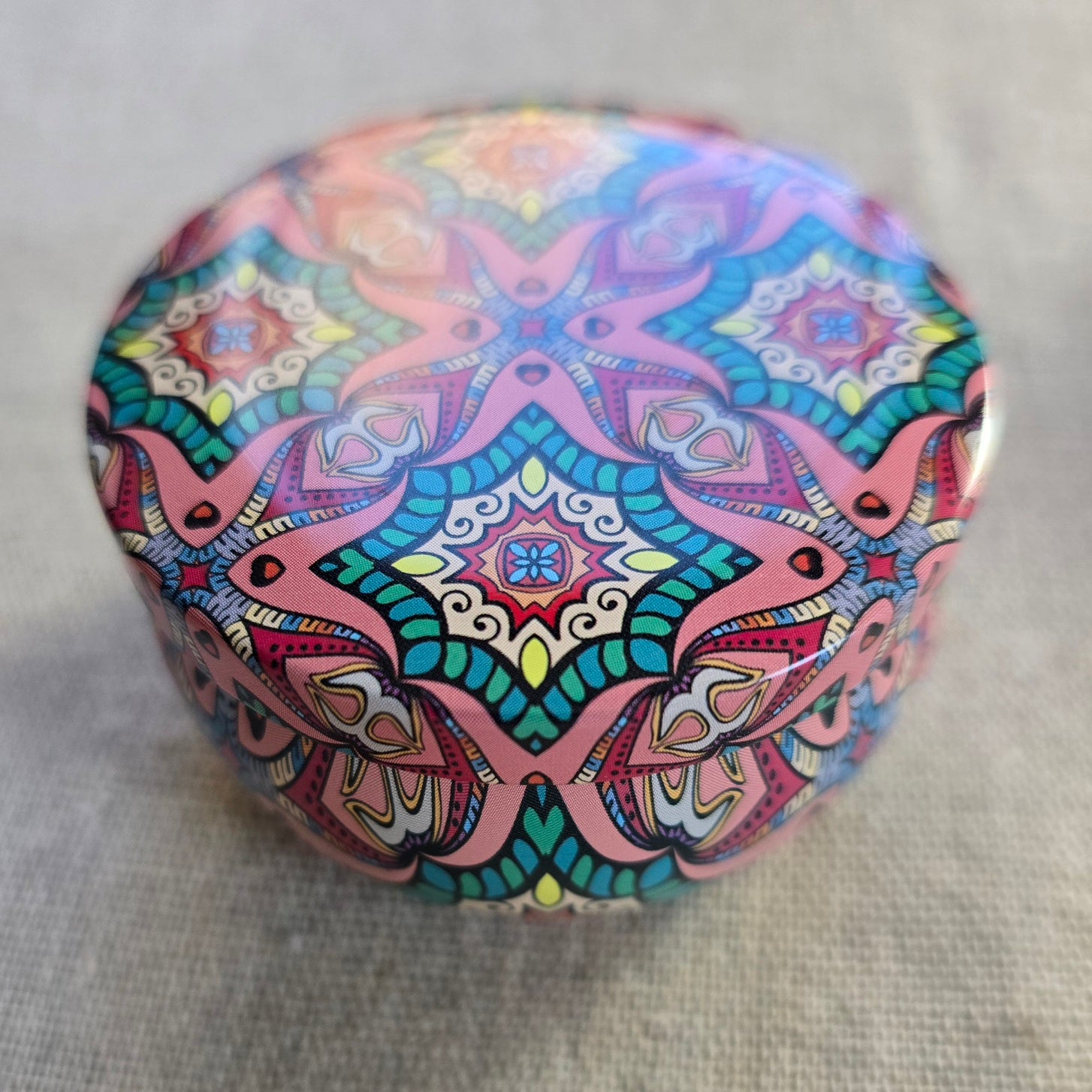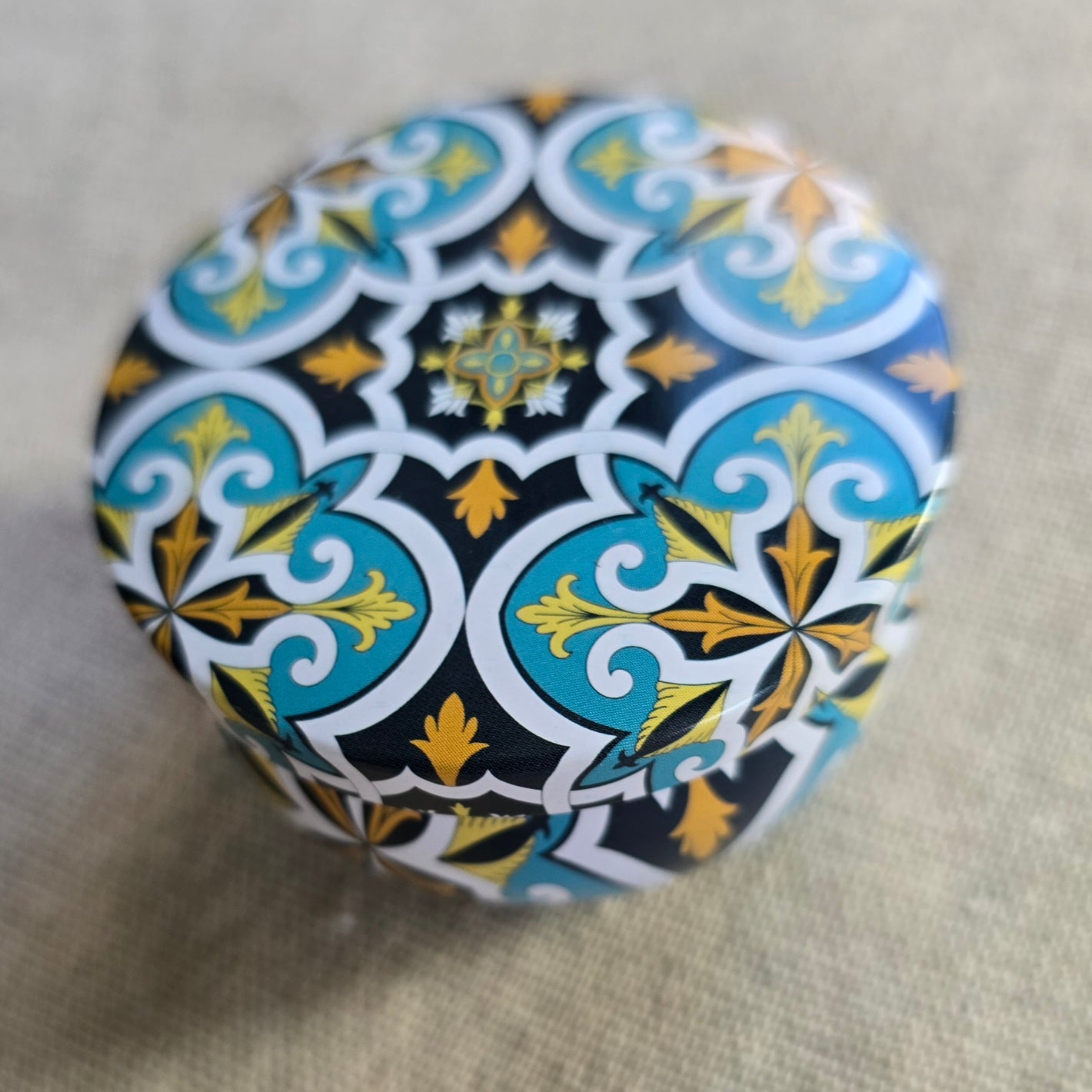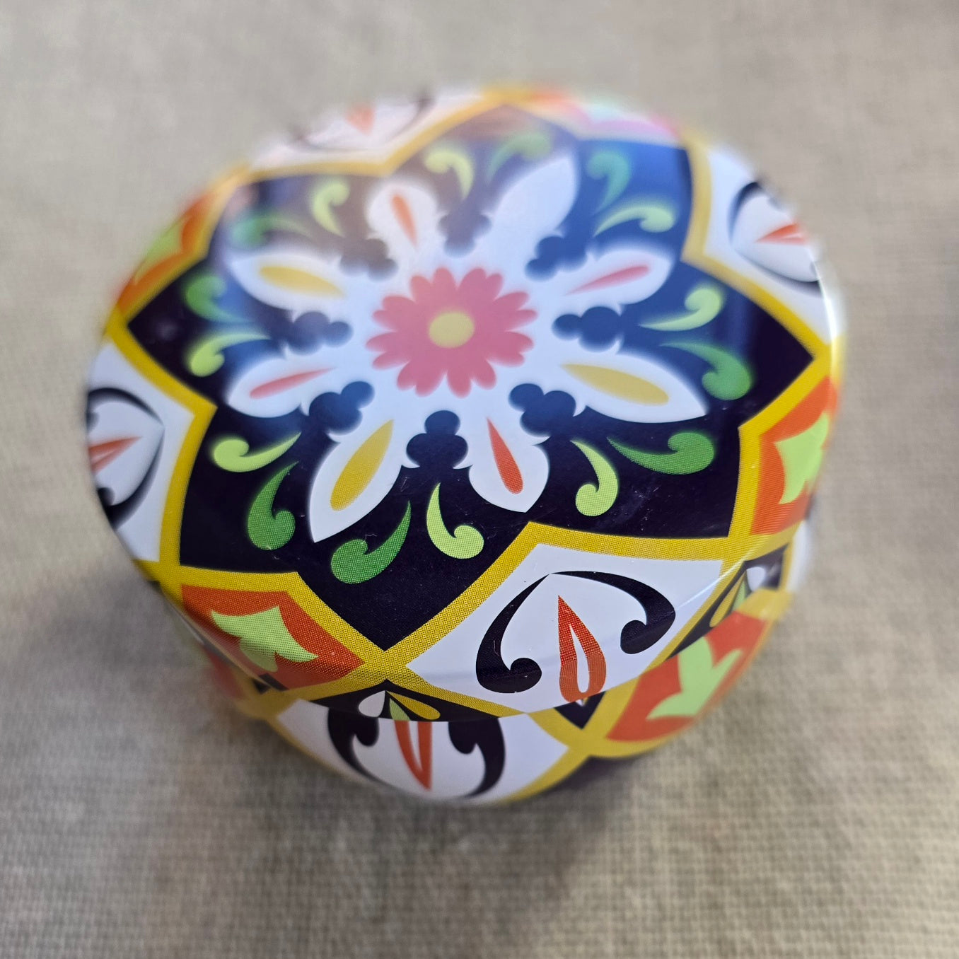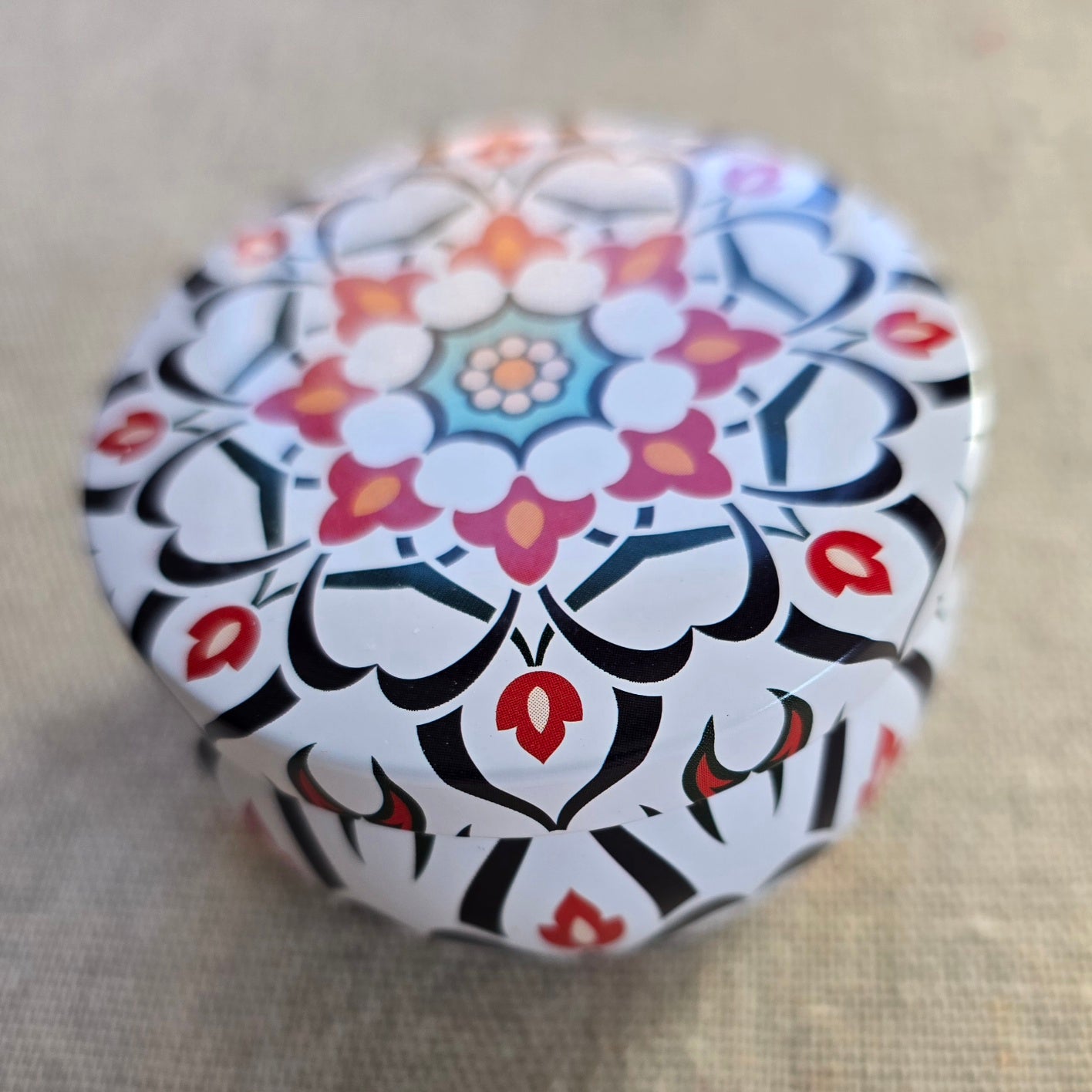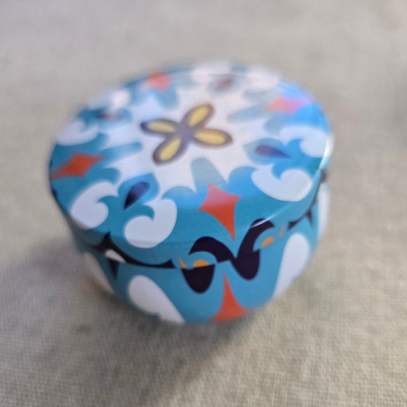 - 🎁 Decorative Tin with Lid – Each candle comes in a charming, reusable tin with a snug lid—ready to gift, display, or pack for travel.