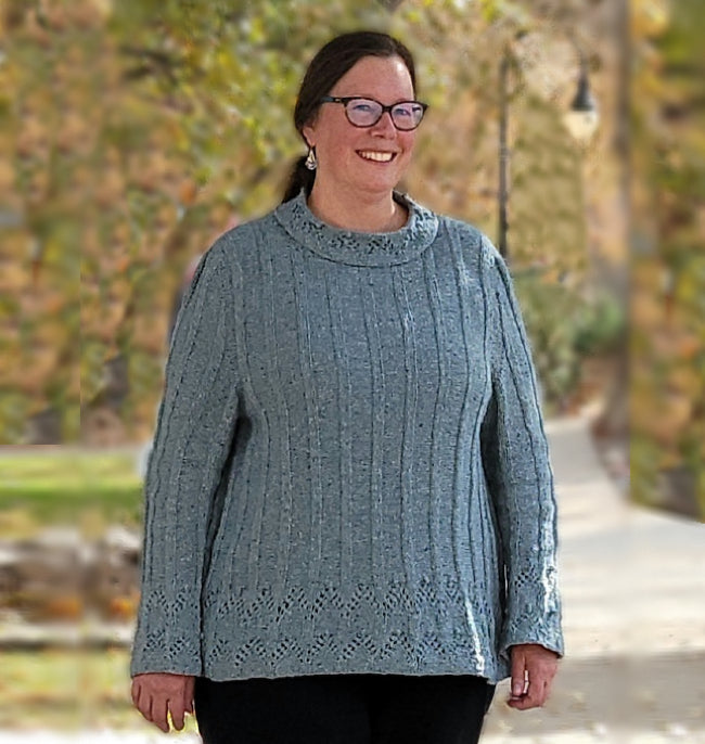 When the nights turn cool and mornings are chilly, it's time to turn to a snuggly knit. What could be more snuggly than cashmere, silk and pure merino wool, blended into a gorgeous, subtle tweed? Looking for a muted, rich red the color of Virginia Creeper leaves? Brannagh is the perfect color to wear to your next apple cider get-together. Copper Coast is reminiscent of maple leaves and pancakes, and Rioga is the perfect crisp blue of sky in Autumn. The Cloisters Kit includes the printed pattern (size XS - 5X) and enough Arranmore Light yarn from the Fibre Co. to complete your project. Shipping is free, shipped to addresses within the continental US.