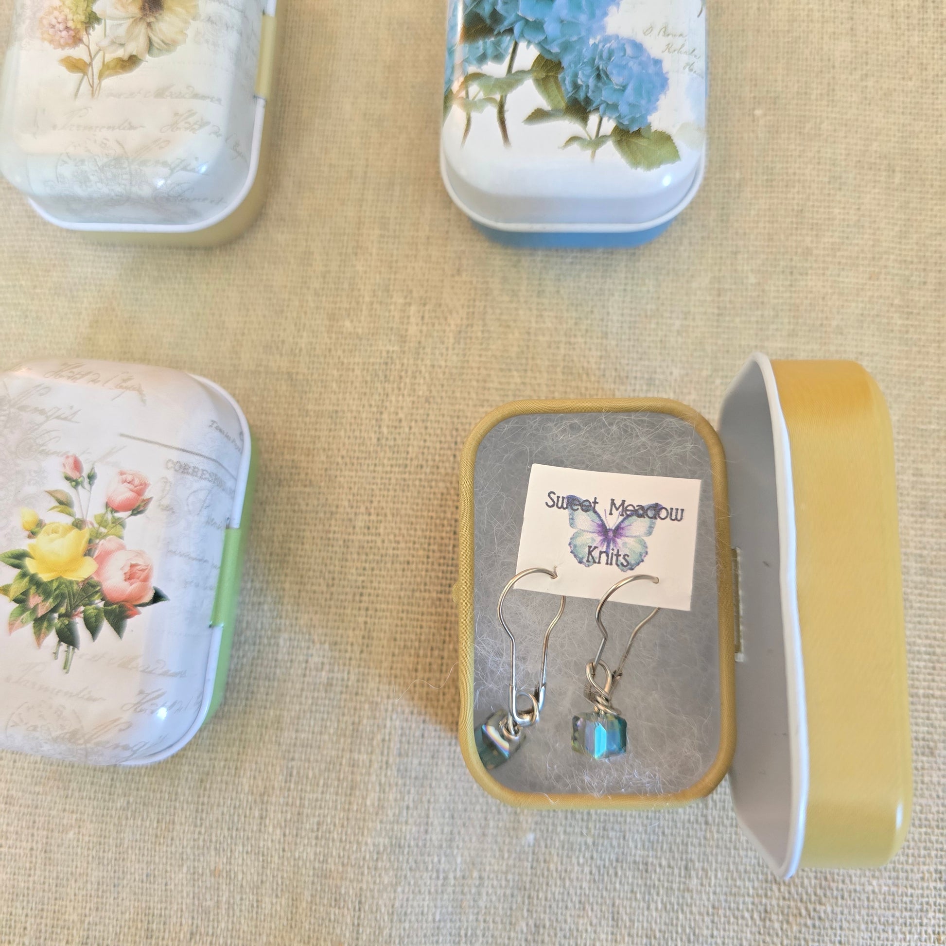 This charming set of Czech glass stitch markers brings a touch of sparkle to your knitting, beautifully presented in a vintage-style tin that’s gift-ready and easy to slip into any project bag.